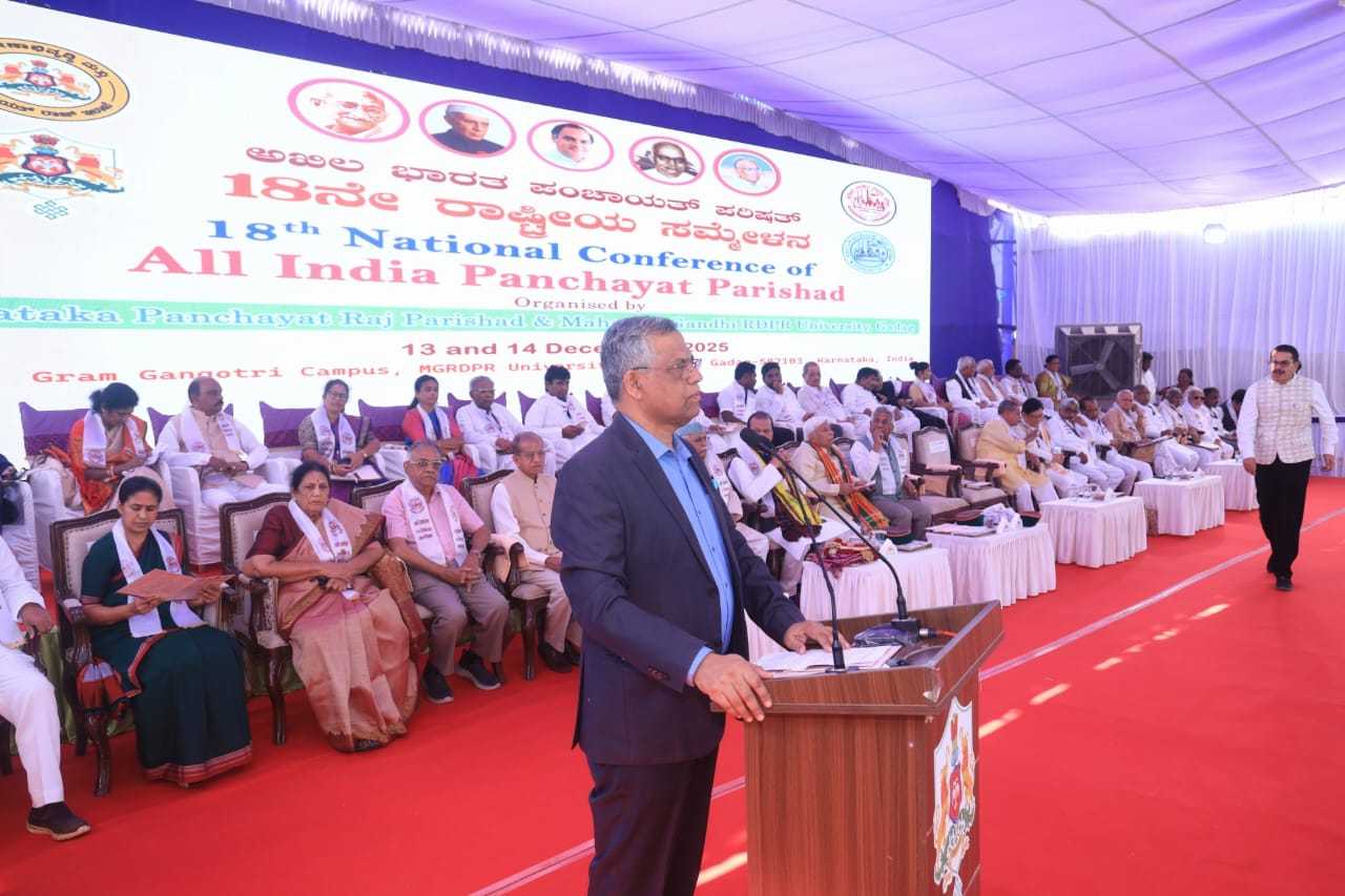 ಮ.ಗಾಂ.ಗ್ರಾ.ಪಂ.ರಾ. ವಿಶ್ವವಿದ್ಯಾಲಯ, ಗದಗದಲ್ಲಿ ದಿನಾಂಕ 13.12.2025 ರಂದು ಅಖಿಲ ಭಾರತ ಪಂಚಾಯತ್ ಪರಿಷತ್ನ 18ನೇ ರಾಷ್ಟ್ರೀಯ ಸಮ್ಮೇಳನವನ್ನು ಮಾನ್ಯ ಕಾನೂನು, ನ್ಯಾಯ, ಮಾನವ ಹಕ್ಕುಗಳು, ಸಂಸದೀಯ ವ್ಯವಹಾರಗಳು ಮತ್ತು ಶಾಸನ ರಚನೆ ಹಾಗೂ ಪ್ರವಾಸೋದ್ಯಮ ಸಚಿವರಾದ ಶ್ರೀ ಹೆಚ್.ಕೆ. ಪಾಟೀಲರವರು ಉದ್ಘಾಟಿಸಿದರು. ಈ ಕಾರ್ಯಕ್ರಮದಲ್ಲಿ ಶ್ರೀ ಸುಭೋಧ್ ಕಾಂತ್ ಸಹಾಯ್ ಅಧ್ಯಕ್ಷರು, ಅಖಿಲ ಭಾರತ ಪಂಚಾಯತ್ ಪರಿಷತ್ ಮತ್ತು ಮಾಜಿ ಕೇಂದ್ರ ಸಚಿವರು ಹಾಗೂ ಅನೇಕ ಗಣ್ಯರು ಉಪಸ್ಥಿತರಿದ್ದು, ದೇಶದ ವಿವಿಧ ಭಾಗಗಳಿಂದ 1000 ಕ್ಕೂ ಹೆಚ್ಚು ಪ್ರತಿನಿಧಿಗಳು ಭಾಗವಹಿಸಿದ್ದರು.